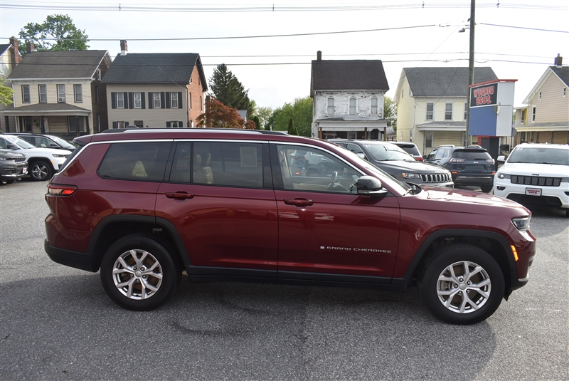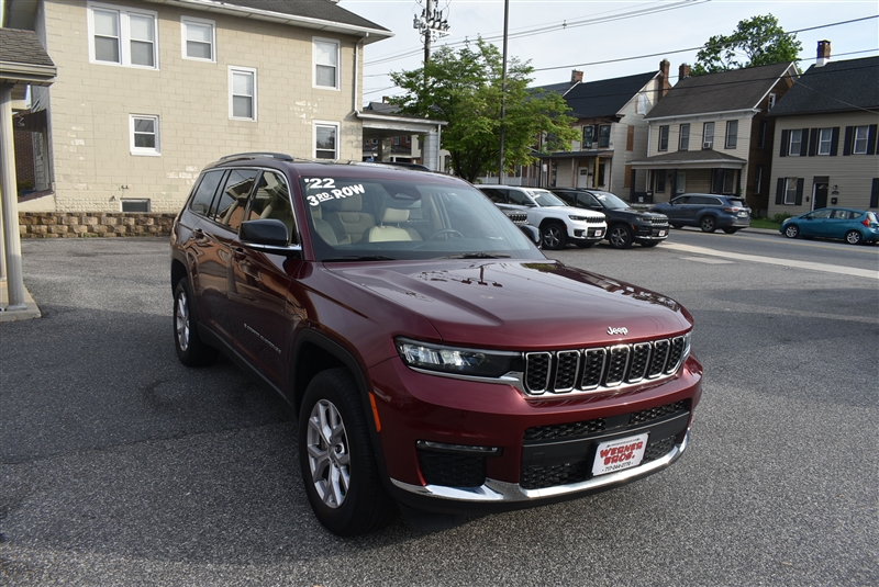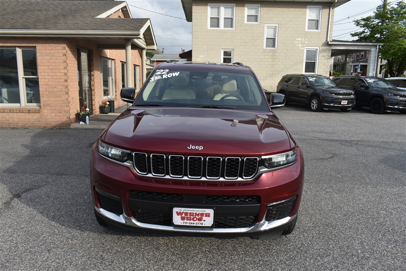 Step into luxury with the 2022 Jeep Grand Cherokee L LIMITED, now available at WERNER BROS AUTO SALES. Dressed in a sophisticated maroon hue, this SUV boasts a potent 3.6L 6-cylinder engine paired with a smooth 8-speed automatic transmission for an impeccable driving experience. This Grand Cherokee L is not just about power; it's also about top-tier safety and comfort features: ABS, a suite of airbags, blind-spot monitoring, and automatic emergency braking ensure peace of mind. The tech-savvy will appreciate the Apple CarPlay, Bluetooth connectivity, and premium sound system. Luxurious leather seats, a sunroof, and dual-zone climate control add to the exquisite feel of the cabin. Whether you're navigating through city streets or gearing up for a weekend adventure, the backup camera and sensors, remote start, and keyless entry make your journey effortless. For more information or to schedule a test drive, contact WERNER BROS AUTO SALES at 717-244-2770. Your sophisticated adventure awaits.