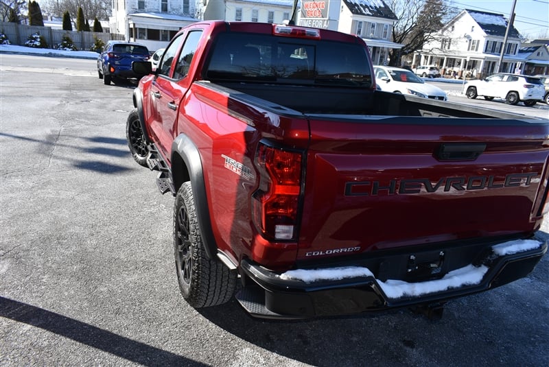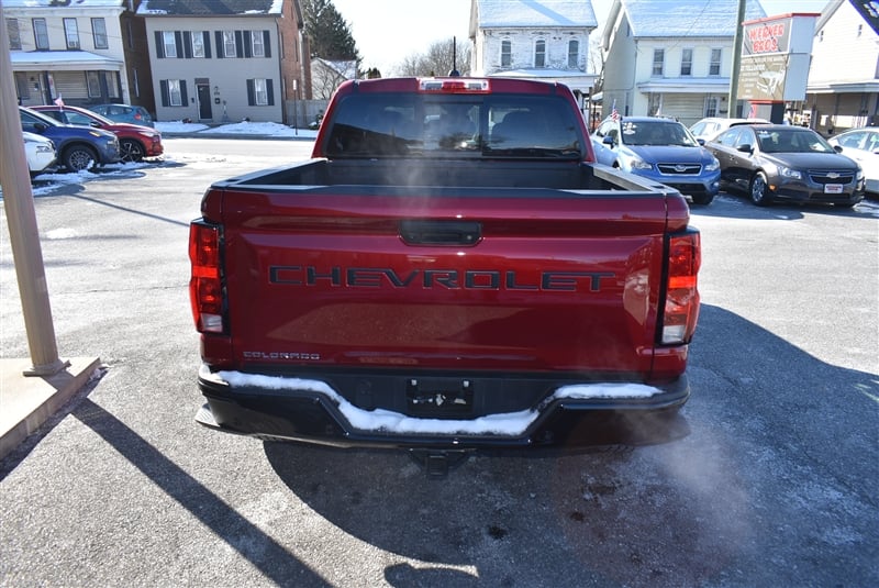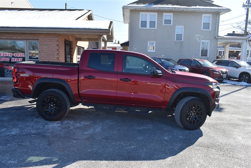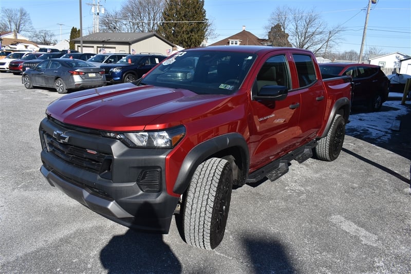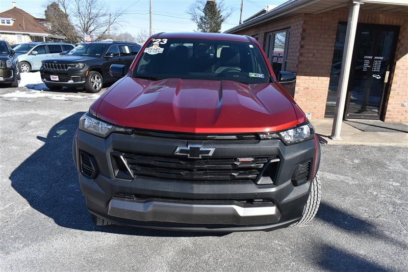 Introducing the 2023 Chevrolet Colorado TRAIL BOSS, now available at Werner Bros Auto Sales. This rugged dark red pickup is powered by a robust 2.7L 4-cylinder engine paired with a smooth automatic transmission, designed to take on any task with ease. The TRAIL BOSS trim offers a plethora of safety and convenience features, including a suite of advanced driver aids such as Forward Collision Warning, Pedestrian Automatic Emergency Braking, and Dynamic Brake Support. Enjoy the comfort of air conditioning, power windows, and a tilt steering wheel, while the backup camera and daytime running lights enhance your visibility and safety on the road. With active belts, anti-lock brakes, and an automatic passenger sensor for the airbag system, this Colorado prioritizes your security. Ready for adventure and brimming with confidence, contact Werner Bros Auto Sales at 717-244-2770 to claim your piece of power and precision today!