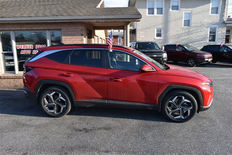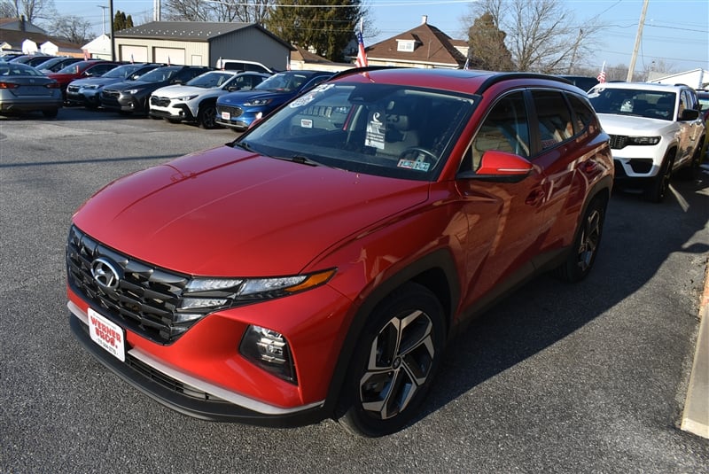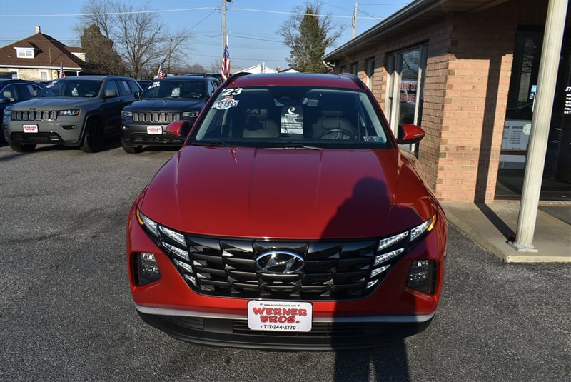 Discover the 2023 Hyundai Tucson SEL at Werner Bros Auto Sales. This red SUV features a fuel-efficient 2.5L 4-cylinder engine paired with an automatic transmission for a smooth, confident drive. With only 24,064 miles, it's ready for many more adventures. Safety and convenience come standard with advanced features such as Blind Spot Warning, Lane Keeping Assistance, Forward Collision Warning, and a Backup Camera. Enjoy added peace of mind from Electronic Stability Control, Traction Control, and multiple airbag systems. Comfort and practicality meet with a tilt steering wheel and keyless entry with alarm. Call Werner Bros Auto Sales today at 717-244-2770 to schedule your test drive and see why the Tucson SEL is a smart choice for your next vehicle.