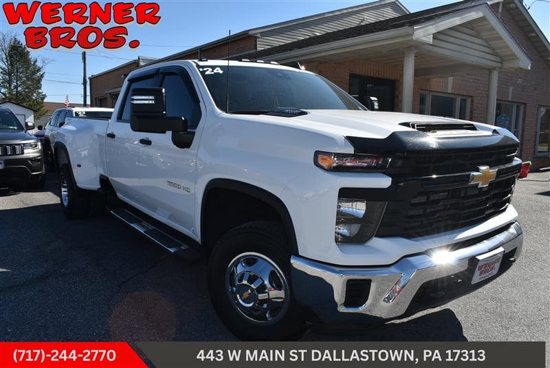 Conquer every road with confidence in this 2024 Chevrolet Silverado K3500, now available at Werner Bros Auto Sales. Its brilliant white finish pairs perfectly with the commanding 6.6L 8-cylinder engine and smooth automatic transmission, delivering both strength and refinement. Designed for serious performance, it's equipped with advanced safety and convenience features such as Forward Collision Warning, Lane Departure Warning, and Pedestrian Automatic Emergency Braking. Enjoy comfort and control with keyless ignition, power windows, and a tilt steering wheel. The Silverado's turbocharged powertrain and stability systems ensure dependable handling whether on the job site or the open highway. Experience the perfect blend of power, technology, and safety-visit Werner Bros Auto Sales or call 717-244-2770 to schedule your test drive today.