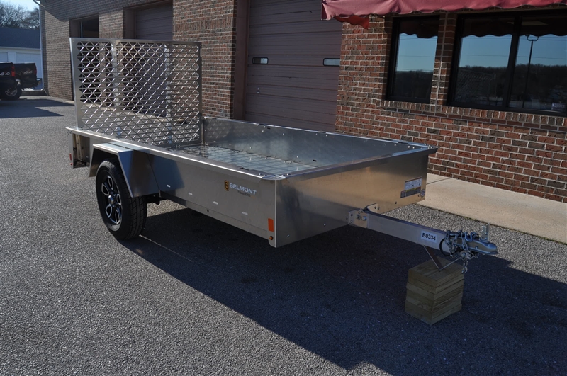 BELMONT ALUMINUM SOLID SIDE UTILITY TRAILER, 5 X 10 BED SIZE, 2999 LB GVWR, ALL FABRICATED ALUMINUM CONSTRUCTION, STAKE POCKETS, ALUMINUM RAMP, TORSION AXLE, 15'' RADIAL TIRES AND ALLOY WHEELS, 2'' FIXED COUPLER, SAFETY CHAINS, LED LIGHTS, 4 PIN ELECTRICAL HARNESS, STRAIGHT TONGUE TILT AND RAMP. 5 YEAR WARRANTY. EXCELLENT FINANCING AVAILABLE. PLEASE CALL OUR LEADER HEIGHTS LOCATION AT 717-741-1567.