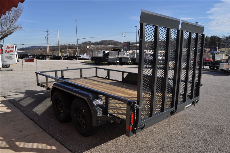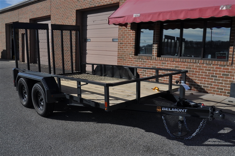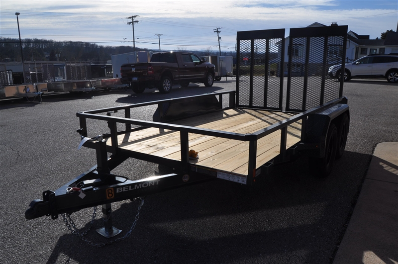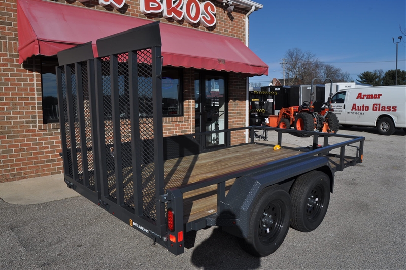 BELMONT 82'' X 12' TUBE TOP UTILITY TRAILER, TANDEM AXLE, HEAVY DUTY FRAME, 12'' HIGH SIDES, WRAPPED A FRAME TONGUE, 2 X 8 TREATED YELLOW PINE FLOOR, 5' LONG SPLIT MESH GATE WITH SPRING ASSIST, 2-5/16'' COUPLER, BOLT ON SET BACK JACK, EZ LUBE AXLES WITH SELF ADJUSTING BRAKES, 15'' WHEELS WITH RADIAL TIRES, DIAMOND PLATE FENDERS, SAFEETY CHAINS, HIGH QUALITY URETHANE PRIMER AND TOP COAT, SEALED PHILLIPS MODULAR WIRE HARNESS, GROMMET MOUNTED LED LIGHTS, SPARE MOUNT. EXCELLENT FINANCING AVAILABLE. PLEASE CALL OUR LEADER HEIGHTS LOCATION AT 717-741-1567.