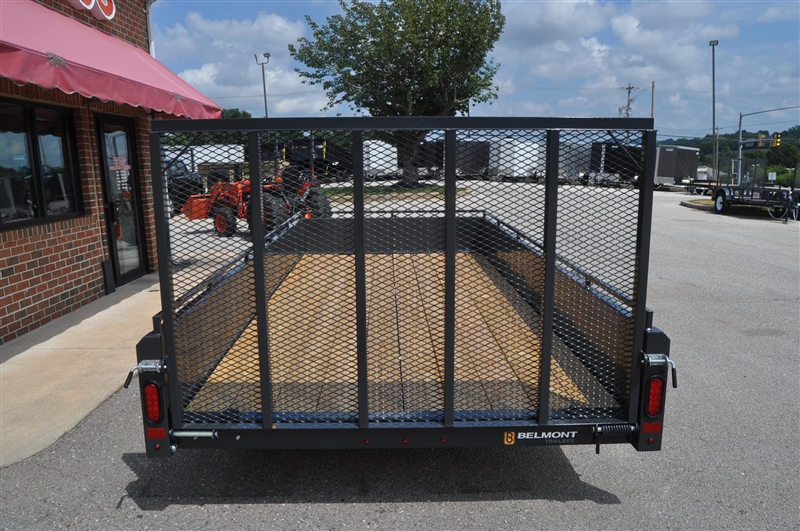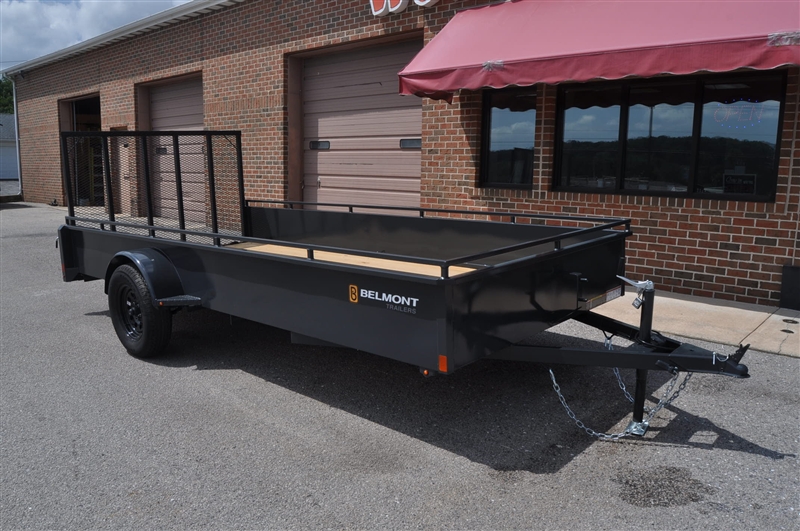 BELMONT MODEL UT614SS, SOLID SIDE UTILITY TRAILER, 76'' X 14' BED SIZE, 18'' HIGH SIDES WITH TIE RAIL, 2 X 8 TREATED YELLOW PINE FLOOR, 4' LONG FOLD FLAT MESH GATE WITH SPRING ASSIST, 15'' RADIAL TIRES WITH STEEL WHEELS, 2K BOLT ON SET BACK JACK, 2'' A FRAME COUPLER, ADJUSTABLE SAFETY CHAINS, HIGH QUALITY URETHANE PRIMER AND TOP COAT, SEALED PHILLIPS MODULAR WIRE HARNESS, GROMMET MOUNTED LED LIGHTS, SPARE MOUNT, DIAMOND PLATE FENDER STEPS. 5 YEAR WARRANTY. EXCELLENT FINANCING AVAILABLE. PLEASE CALL OUR LEADER HEIGHTS LOCATION AT 717-741-1567.