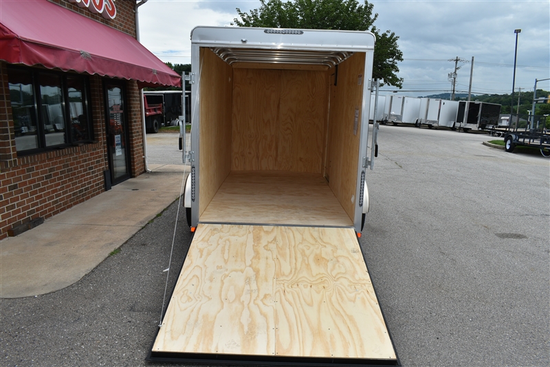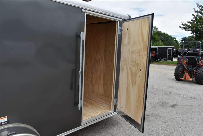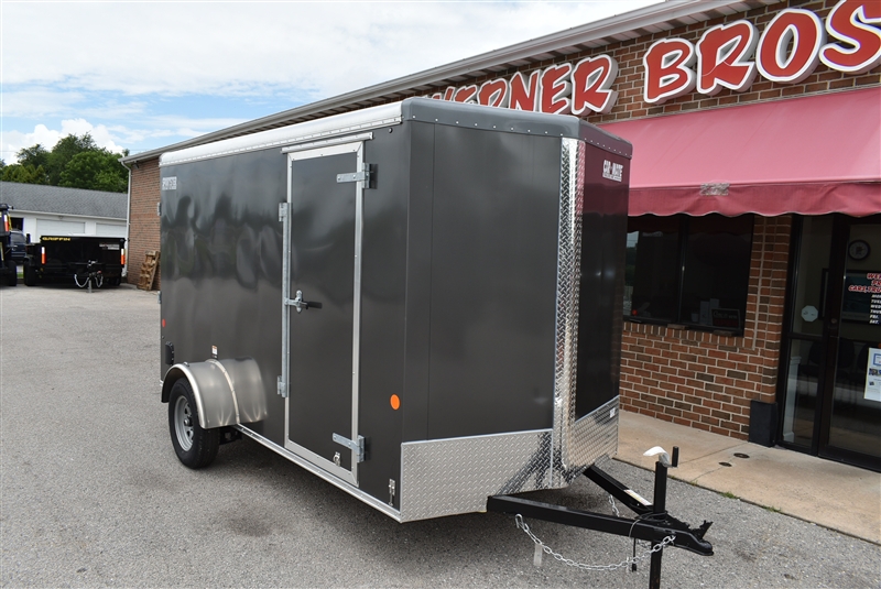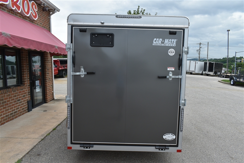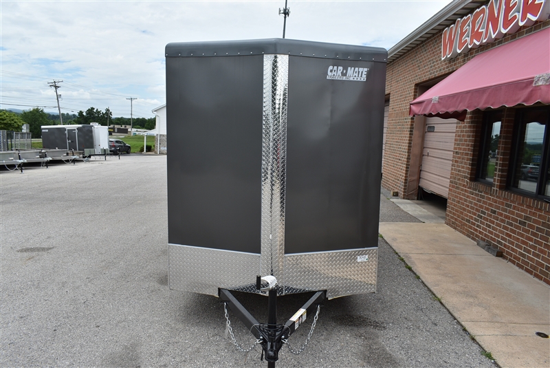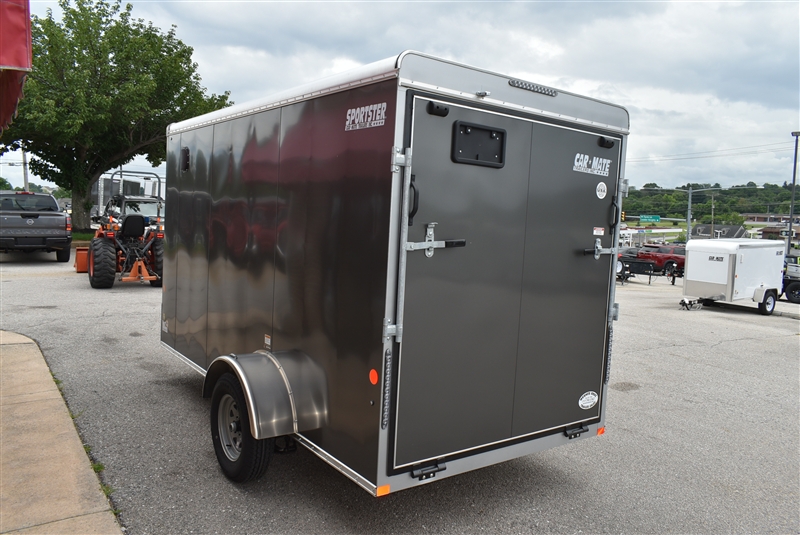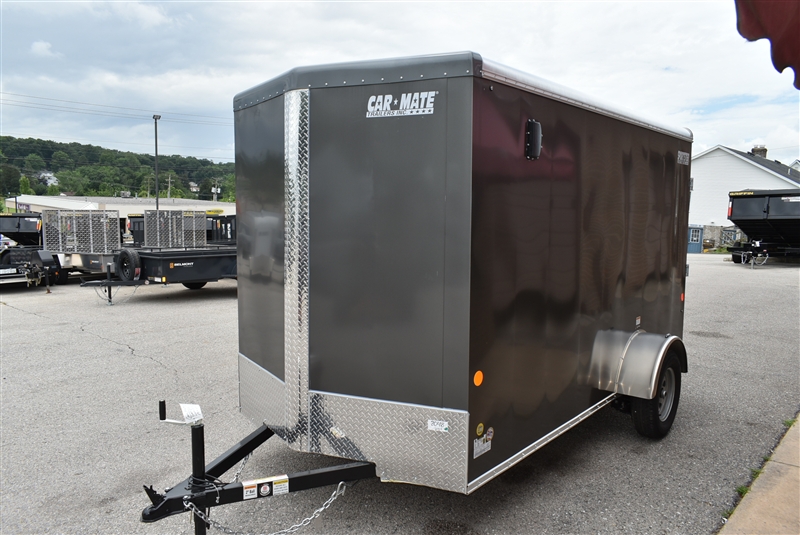 CAR MATE 6 X 12 V SPORT ENCLOSED TRAILER, 2990 LB GVWR, AERODYNAMIC V NOSE, DROP AXLE, 205/75R15 RADIAL TIRES, SIDE MAN DOOR, CHARCOAL GRAY METALLIC, 6'6'' INTERIOR HEIGHT, REAR RAMP DOOR WITH SPRING ASSIST, WALL VENTS, 12V LED DOME LIGHT WITH WALL SWITCH, SILVER SPOKE WHEELS. LIFETIME WARRANTY ON ROOF, FLOOR AND LED LIGHTING. EXCELLENT FINANCING AVAILABLE. PLEASE CALL OUR LEADER HEIGHT LOCATION AT 717-741-1567.