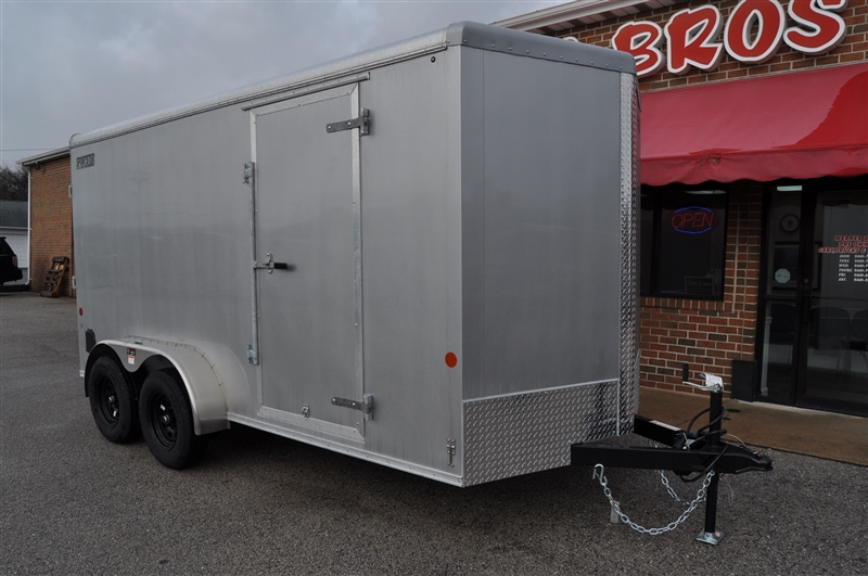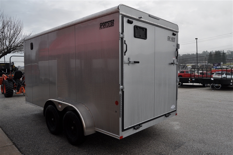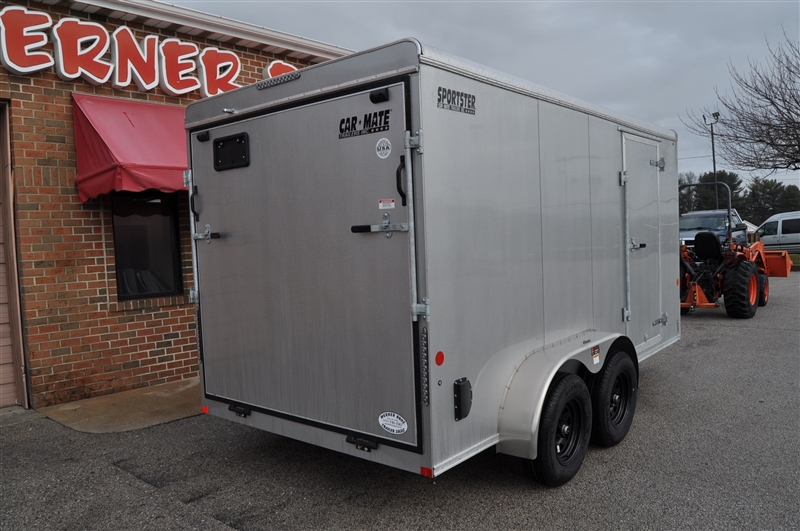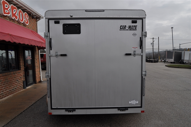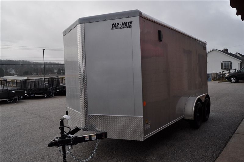 CAR MATE 7 X 14 ENCLOSED V NOSE TRAILER, SILVER FROST METALLIC, 6'6'' INTERIOR HEIGHT, REAR RAMP DOOR WITH DOUBLE SPRING ASSIST, WALL VENTS, 2 DOME LIGHTS, WALL SWITCH, BLACK SPOKE WHEELS, .032 ONE PIECE ROOF. LIFETIME WARRANTY ON ROOF, FLOOR AND LED LIGHTING. EXCELLENT FINANCING AVAILABLE. PLEASE CALL OUR LEADER HEIGHTS LOCATION AT 717-741-1567.