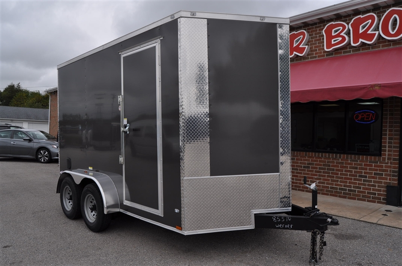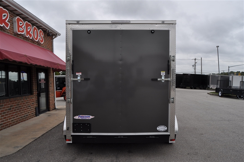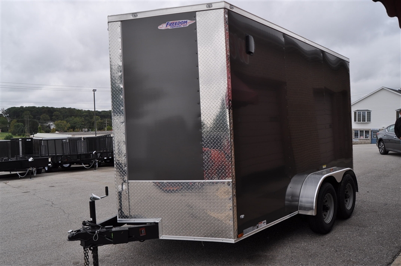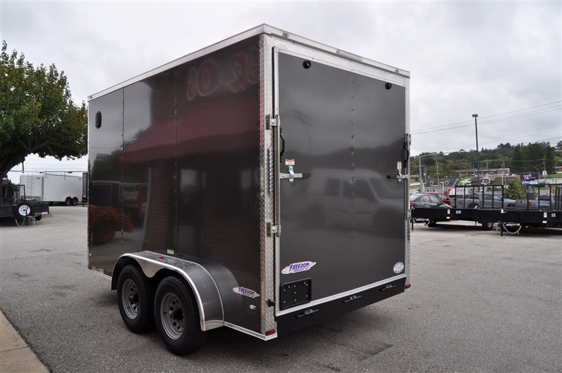 SALE! SALE! SALE! FREEDOM 7 X 12 ENCLOSED V NOSE TRAILER, 7000 LB GVWR, TANDEM AXLE, GREAT FOR UTV'S AND GOLF CARTS!, 12'' OC FLOOR SUPPORTS, .080 POLYCORE SEMI SCREWLESS EXTERIOR, 2-5/16'' COUPLER, ELECTRIC BRAKES, PLYWOOD WALLS AND FLOOR, ELIXIR SIDE DOOR WITH BAR LOCK AND PADDLE LATCH, REAR RAMP DOOR, DOME LIGHT, WALL VENTS, RADIAL TIRES. EXCELLENT FINANCING AVAILABLE. PLEASE CALL OUR LEADER HEIGHTS LOCATION AT 717-741-1567.