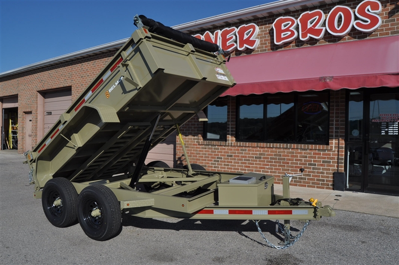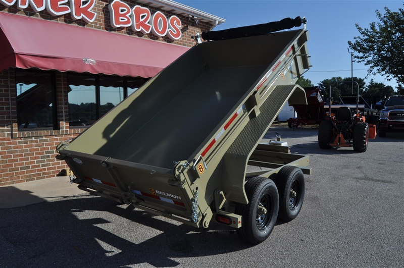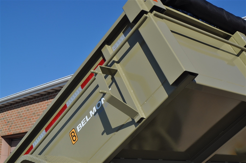 BELMONT MODEL DTL7210-10K LO PROFILE DUMP TRAILER, 9990 LB GVWR, HEAVY DUTY STEEL FRAME, 20'' HIGH SIDES, 10 GA STEEL FLOOR, BARN DOORS, 6' SLIDE IN LADDER RAMPS, STAKE POCKETS, 4 D RINGS, EZ LUBE AXLES, RADIAL TIRES AND BLACK STEEL WHEELS, 2-5/16'' ADJUSTABLE COUPLER, HIGH QUALITY URETHANE PRIMER AND TOP COAT, SEALED PHILLIPS MODULAR WIRE HARNESS, GROMMET MOUNTED LED LIGHTS, HYDRAULIC POWER UNIT, SOLAR BATTERY CHARGER, TARP KIT. 5 YEAR WARRANTY. EXCELLENT FINANCING AVAILABLE. PLEASE CALL OUR LEADER HEIGHTS LOCATION AT 717-741-1567.
