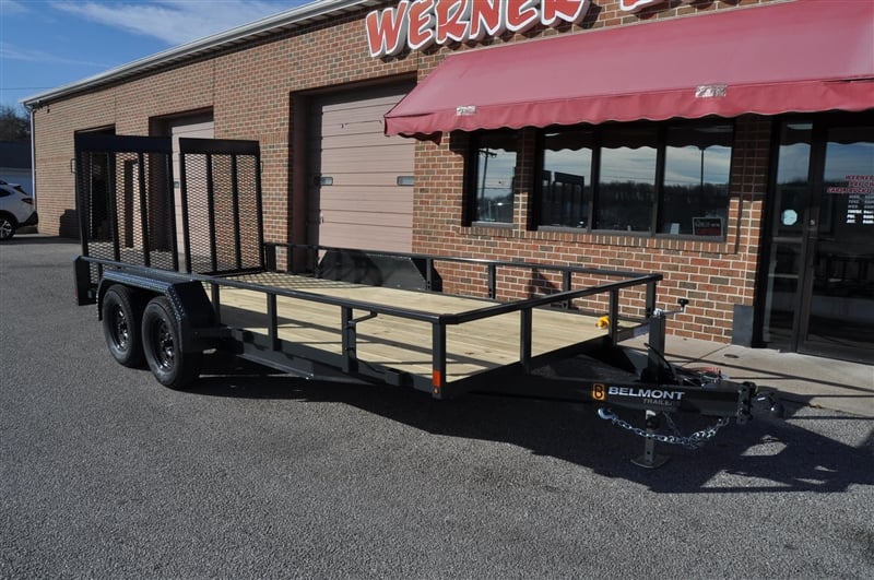 BELMONT LT616TT-7K, TUBE TOP TANDEM AXLE UTILITY TRAILER, HEAVY DUTY FRAME AND UPRIGHTS, 12'' HIGH SIDES, 2 X 8 TREATED YELLOW PINE DECK, 5' LONG SPLIT MESH GATE WITH SPRING ASSIST, 2-5/16'' COUPLER, DROP LEG JACK, EZLUBE HUBS, 15'' RADIAL TIRES, DIAMOND PLATE FENDERS, HIGH QUALITY URETHANE PRIMER AND TOP COAT, SEALED PHILLIPS MODULAR WIRE HARNESS, GROMMET MOUNTED LED LIGHTS, SPARE MOUNT. 5 YEAR LIMITED WARRANTY. EXCELLENT FINANCING AVAILABLE. PLEASE CALL OUR LEADER HEIGHTS LOCATION AT 717-741-1567.