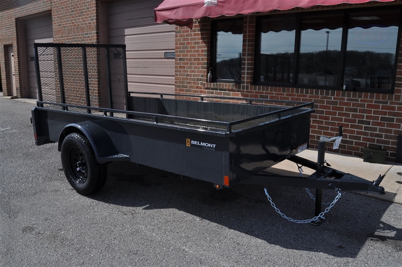 BELMONT 5 X 10 SOLID SIDE UTILITY TRAILER, 2999 LB GVWR, HEAVY DUTY FRAME, 18'' HIGH SIDES WITH TIE RAIL, 2 X 8 TREATED PINE DECK, 4' LONG FOLD FLAT MESH GATE WITH SPRING ASSIST, 3.5K EZ LUBE AXLE, 15'' RADIAL TIRES AND STEEL WHEELS, 2K SET BACK JACK, 2'' A FRAME COUPLER, SAFETY CHAINS, HIGH QUALITY URETHANE PRIMER AND TOP COAT, SEALED PHILLIPS MODULAR WIRE HARNESS, GROMMET MOUNTED LED LIGHTS, SPARE MOUNT, DIAMOND PLATE FENDER STEPS. 5 YEAR WARRANTY. EXCELLENT FINANCING AVAILABLE. PLEASE CALL OUR LEADER HEIGHTS LOCATION AT 717-741-1567.