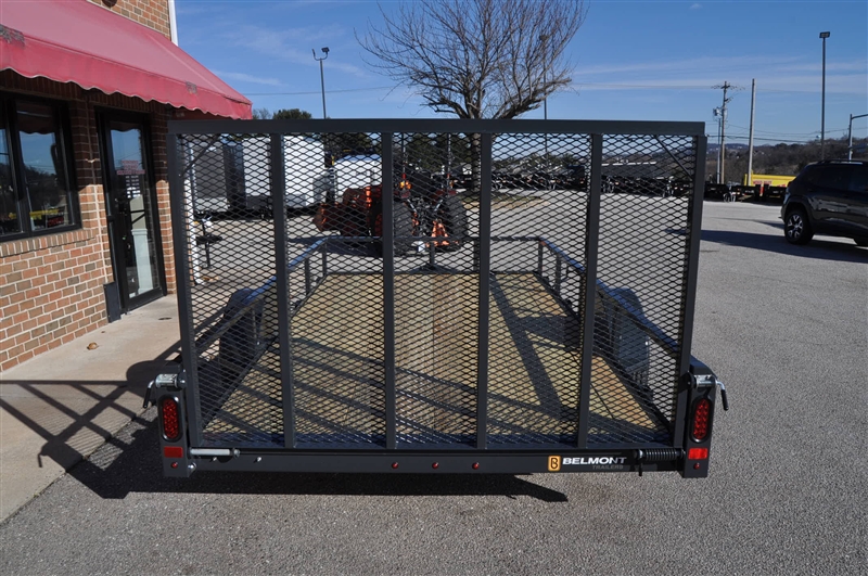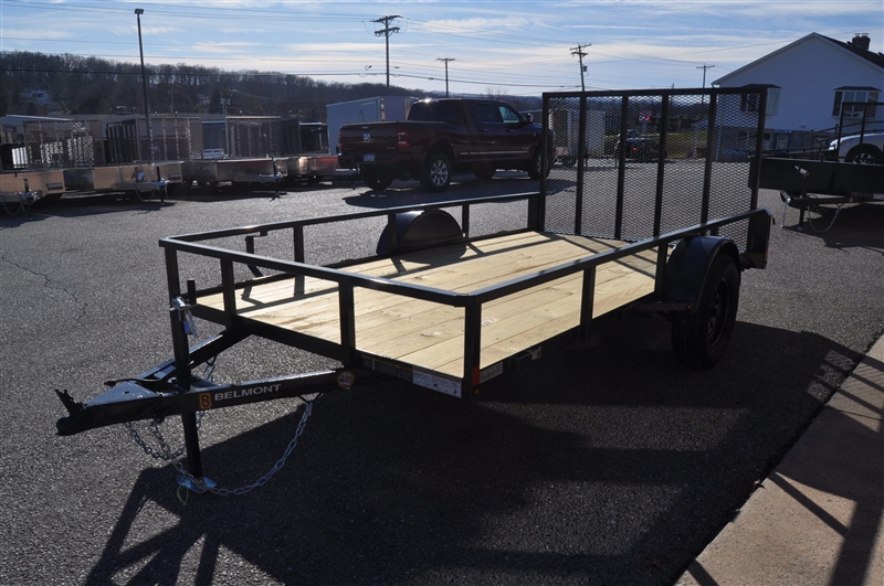 BELMONT UT612TT OPEN UTILITY TRAILER, 2999 LB GVWR, HEAVY DUTY TUBE STEEL TOP RAIL AND UPRIGHTS, 12'' HIGH SIDES, 2 X 8 TREATED DECK, 4' LONG MESH GATE, EZ LUBE AXLES, 15'' RADIAL TIRES AND BLACK STEEL WHEELS, 2'' A FRAME COUPLER, SAFETY CHAINS, HIGH QUALITY URETHANE PRIMER AND TOP COAT, SEALED PHILLIPS MODULAR WIRE HARNESS, GROMMET MOUNTED LED LIGHTS, DIAMOND PLATE FENDER STEPS, SPARE MOUNT. 5 YEAR WARANYT. EXCELLENT FINANCING AVAILABLE. PLEASE CALL OUR LEADER HEIGHTS LOCATION AT 717-741-1567.