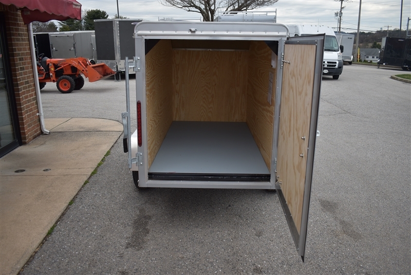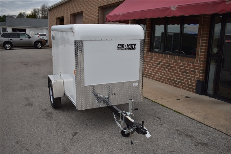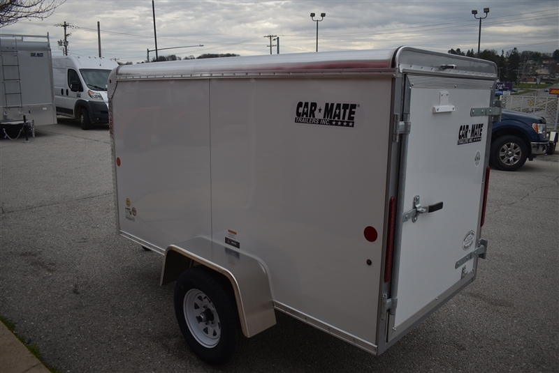 CAR MATE 4 X 8.5 ENCLOSED CUSTOM CARGO TRAILER, RADIAL TIRES, SAFETY CHAINS, TORSION AXLE, EZ LUBE HUBS, 2'' COUPLER, 4 FLAT LIGHT PLUG CONNECTOR, 3/8'' PLYWOOD WALLS WITH 16'' OC STUDS, .030 ALUMINUM EXTERIOR, .032 1 PIECE ALUMINUM ROOF, ALUMINUM ROOF BOWS, 3/4'' PAINTED PLYWOOD FLOOR, 2'' X 2'' X 3/16'' STRUCTURAL STEEL ANGLE CROSSMEMBERS, ALUMINUM DIAMOND PLATE CORNERS, ALUMINUM DIAMOND PLATE STONE GUARD, SMOOTH ALUMINUM FNDERS, HOT DIPPED GALVANIZED DOOR HARDWARE, LED LIGHTING. WALL VENTS, 12V LED DOME LIGHT, SILVER SPOKE WHEELS. LIFETIME WARRANTY ON ROOF, FLOOR & LED LIGHTING!! EXCELLENT FINANCING AVAILABLE. PLEASE CALL OUR LEADER HEIGHTS LOCATION AT 717-741-1567.