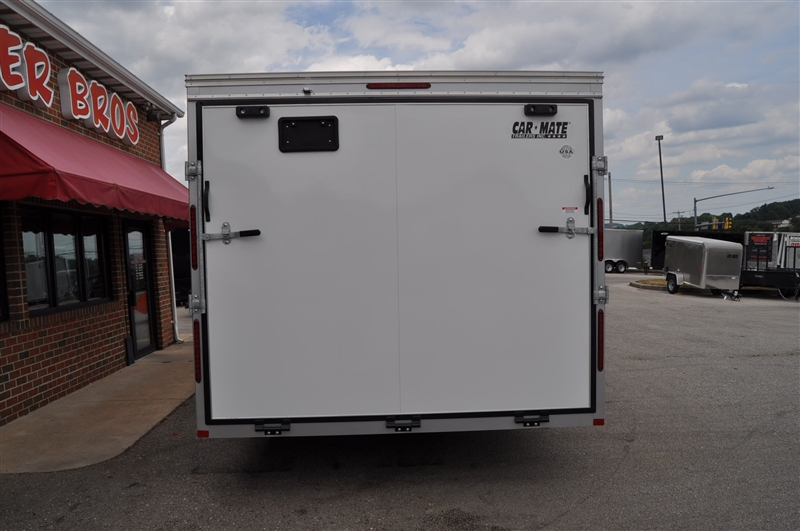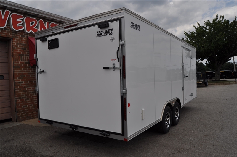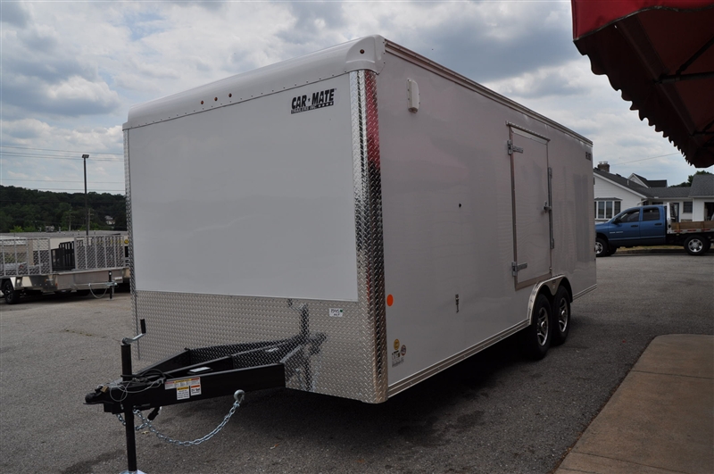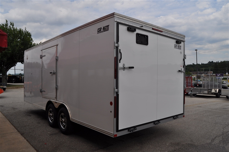 CAR MATE 8.5 X 20 CUSTOM CARGO CAR HAULER, CRYSTAL WHITE, 9990 LB GVWR, 12'' BRAKES, 225/75R15 TIRES AND ALUMINUM WHEELS, TORSION AXLES, 100'' WIDE BODY, 102'' WIDE TRACK AXLES, GET OUT MAN DOOR, 4 HD TIE DOWNS, WALL VENTS, LED DOME LIGHTS, WALL VENTS. LIFETIME WARRANTY ON ROOF, FLOOR AND LED LIGHTING. EXCELLENT FINANCING AVAILABLE. PLEASE CALL OUR LEADER HEIGHTS LOCATION AT 717-741-1567.