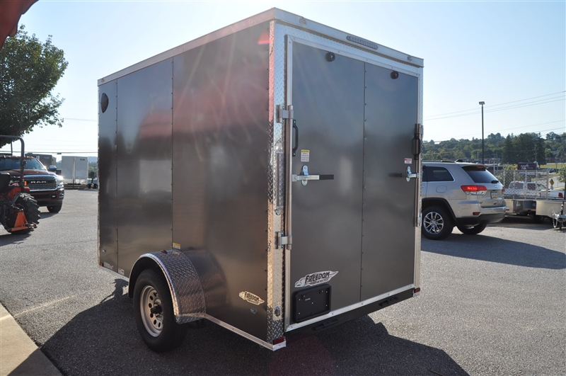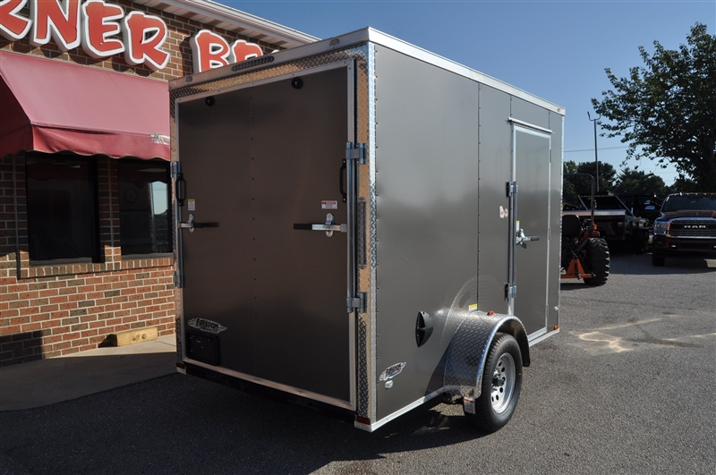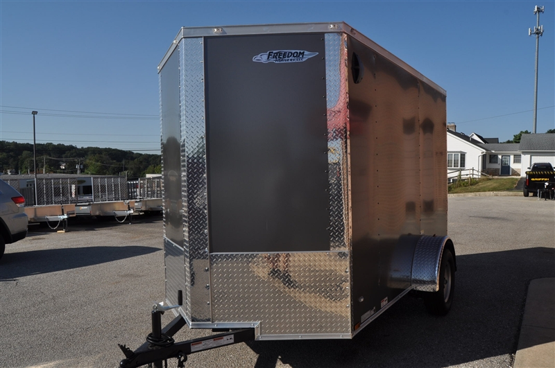 FREEDOM 6 X 10 ENCLOSED V NOSE TRAILER, 6'9'' INTERIOR HEIGHT, 2'' COUPLER, .080 POLYCOR SEMI SCREWLESS EXTERIOR, PLYWOOD WALLS AND FLOOR, ELIXIR SIDE DOOR WITH BAR LOCK AND PADDLE LATCH, REAR RAMP DOOR, RADIAL TIRES, LED LIGHTS, ATP ON ALL CORNERS. EXCELLENT FINANCING AVAILABLE. PLEASE CALL OUR LEADER HEIGHTS LOCATION AT 717-741-1567.