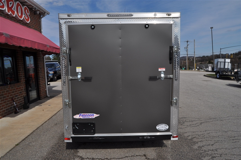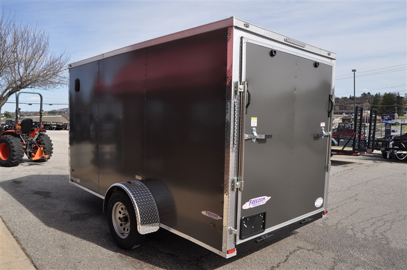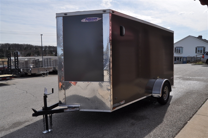 FREEDOM 6 X 12 ENCLOSED V NOSE TRAILER, 6'9'' INTERIOR HEIGHT, SIDE DOOR WITH BAR LOCK AND PADDLE LATCH, PLYWOOD WALLS AND FLOOR, REAR RAMP DOOR, .080 POLYCORE EXTERIOR, SEMI SCREWLESS EXTERIOR, LED LIGHTS, DOME LIGHT WITH WALL SWITCH, RADIAL TIRES, SAFETY CHAINS. EXCELLENT FINANCING AVAILABLE. PLEASE CALL OUR LEADER HEIGHTS LOCATION AT 717-741-1567.
