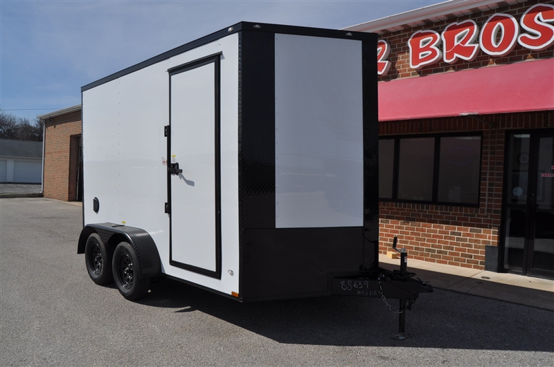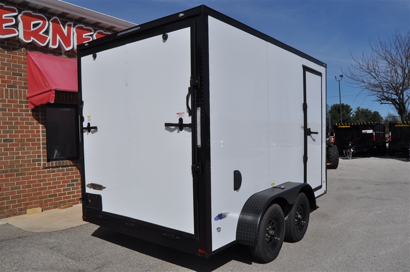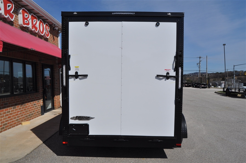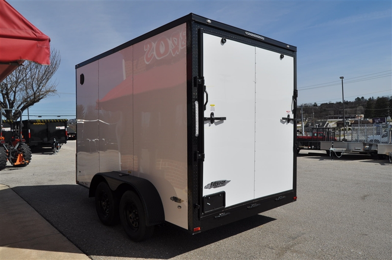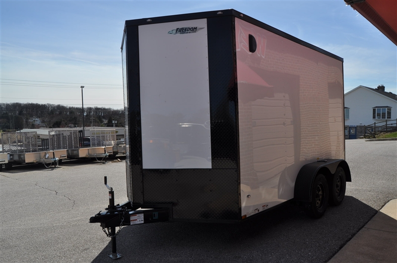 FREEDOM 7 X 12 TANDEM AXLE ENCLOSED TRAILER, V NOSE, WHITE WITH BLACKOUT TRIM PACKAGE, BLACK ATP FENDERS, BLACK ATP ON ALL CORNERS, 7' INTERIOR HEIGHT, REAR RAMP DOOR, ELIXIR SIDE DOOR WITH BAR LOCK AND PADDLE LATCH, DOME LIGHT WITH WALL SWITCH, RADIAL TIRES, 12'' OC FLOOR SUPPORTS. EXCELLENT FINANCING AVAILABLE. PLEASE CALL OUR LEADER HEIGHTS LOCATION AT 717-741-1567.