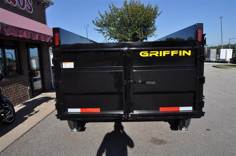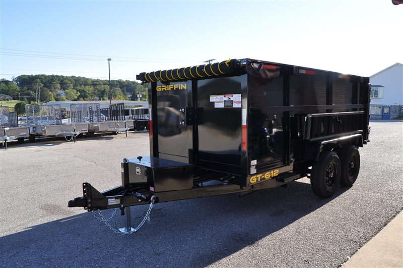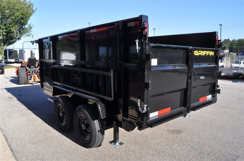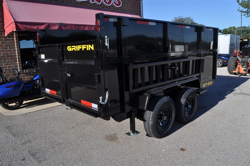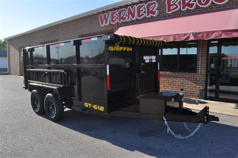 GRIFFIN 6 X 12 HIGH SIDED DUMP TRAILER, 9990 LB GVWR, 48'' HIGH SIDES, ADJUSTABLE COUPLER, 7K DROP LEG JACK, TARP KIT, 5 AMP ON BOARD BATTERY CHARGER, DC BATTERY, POWER UP AND DOWN, EQUIPMENT RAMPS, SPARE MOUNT, TIE DOWNS, COMBINATION GATE. EXCELLENT FINANCING AVAILABLE. PLEASE CALL OUR LEADER HEIGHTS LOCATION AT 717-741-1567.