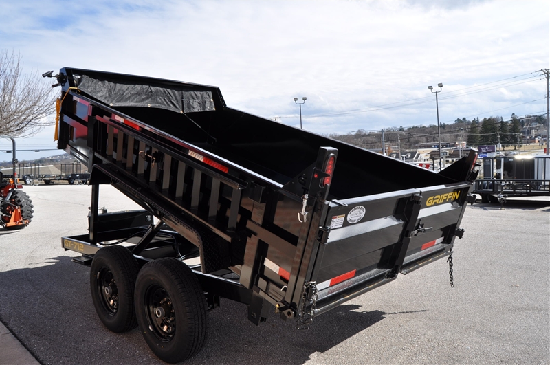 GRIFFIN 7 X 12 LO PROFILE DUMP TRAILER, 12000 LB GVWR, ADJUSTABLE COUPLER, DEEP CYCLE BATTERY, ON BOARD BATTERY CHARGER, DUAL CYLINDER, POWER UP AND DOWN, TARP KIT, TIE DOWNS, EQUIPMENT RAMPS, COMBINATION GATE, RADIAL TIRES AND LED LIGHTS, STABILIZER JACKS. EXCELLENT FINANCING AVAILABLE. PLEASE CALL OUR LEADER EHIGHTS LOCATION AT 717-741-1567.