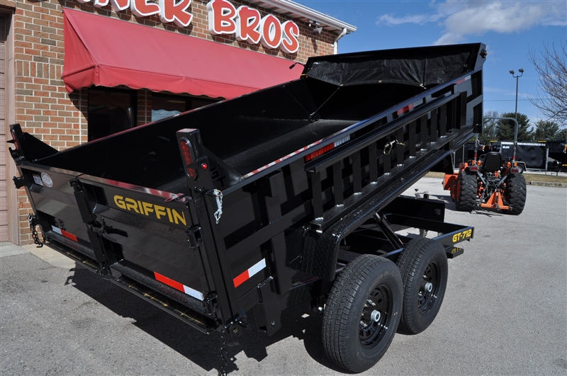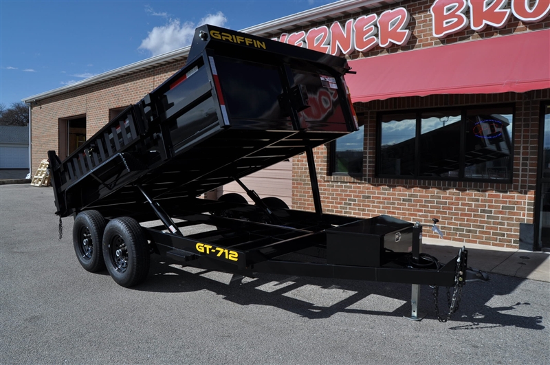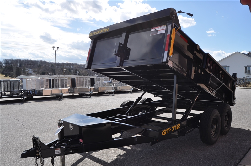 GRIFFIN 7 X 12 LO PROFILE DUMP TRAILER, 12000 LB GVWR, ADJUSTABLE COUPLER, ON BOARD BATTERY CHARGER, STABILIZER JACKS, DEEP CYCLE BATTERY, DUAL CYLINDER, SPARE MOUNT, TIE DOWNS, TARP KIT, COMBINATION GATE, RADIAL TIRES, LED LIGHTS, EQUIPMENT RAMPS. EXCELLENT FINANCING AVAILABLE. PLEASE CALL OUR LEADER HEIGHTS LOCATION AT 717-741-1567.