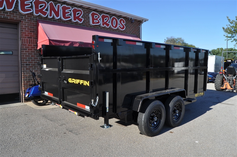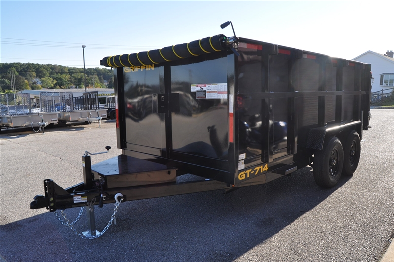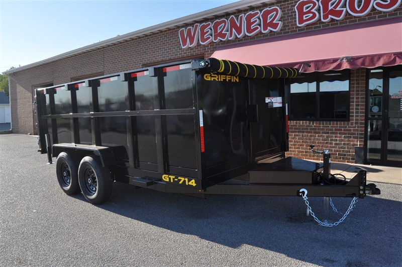GRIFFIN 7 X 14 HIGH SIDED DUMP TRAILER, 14000 LB GVWR, ADJUSTABLE COUPLER, 48'' HIGH SIDES, DC BATTERRY, ON BOARD BATTERY CHARGER, DUAL CYLINDER, TARP KIT, TIE DOWNS, STAB JACKS, EQUIPMENT RAMPS, RADIAL TIRES, LED LIGHTS. EXCELLENT FINANCING AVAILABLE. PLEASE CALL OUR LEADER HEIGHTS LOCATION AT 717-741-1567.