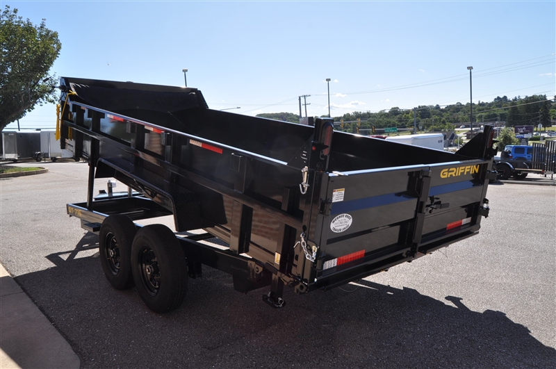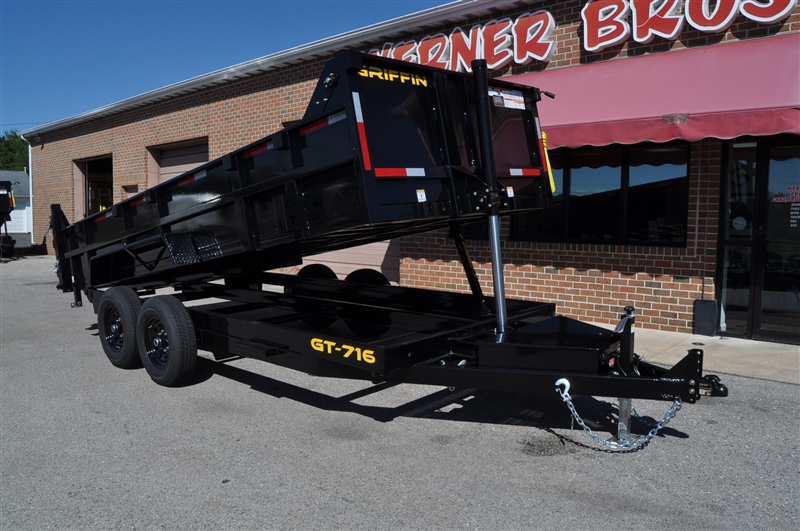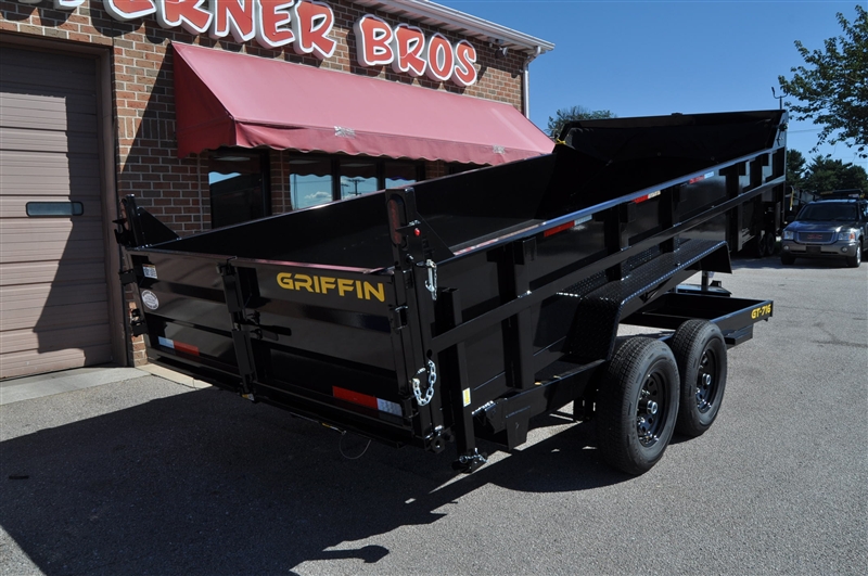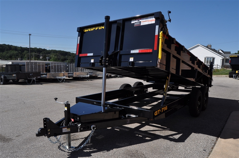 GRIFFIN 7 X 16 TELESCOPIC LO PROFILE DUMP TRAILER, 14000 LB GVWR, ON BOARD BATTERY CHARGER, DC BATTERY, POWER UP AND GRAVITY DOWN, SPARE MOUNT, TIE DOWNS, EQUIPMENT RAMPS, STABILIZATION JACKS, 7K DROP LEG JACK, COMBINATION GATE, TARP KIT, ADJUSTABLE COUPLER, LED LIGHTS, RADIAL TIRES. EXCELLENT FINANCING AVAILABLE. PLEASE CALL OUR LEADER HEIGHTS LOCATION AT 717-741-1567.
