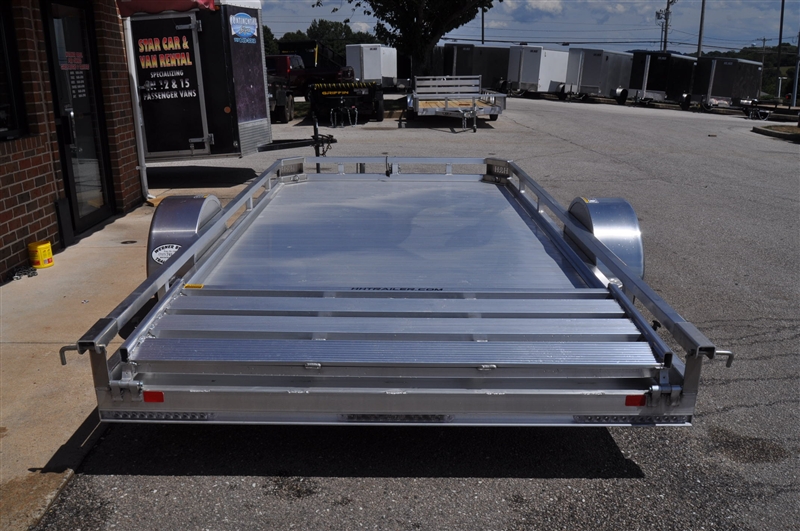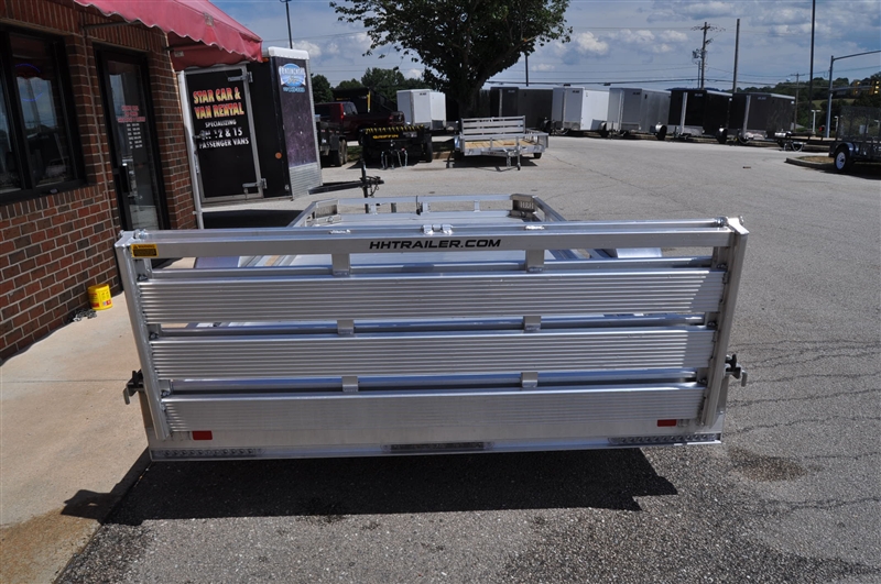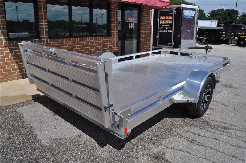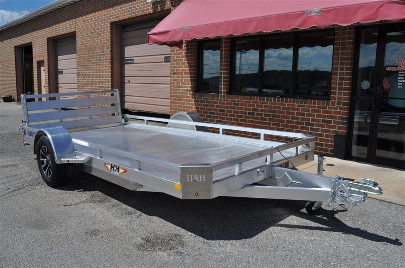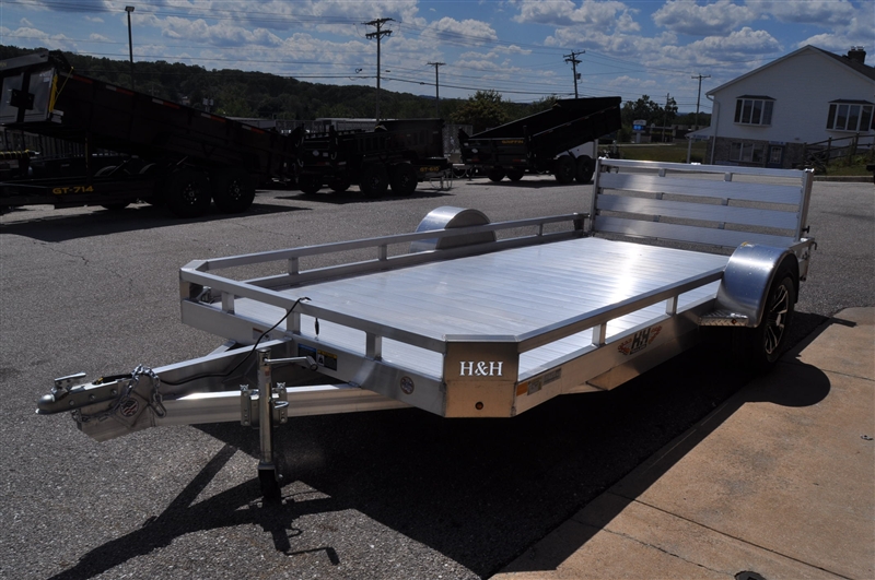 H & H SINGLE AXLE ALUMINUM UTILITY TRAILER, 2990 LB GVWR, 5'' ALUMINUM TUBE FRAME, 4'' X 2'' ALUMINUM TRIPLE TUBE TONGUE, 2'' COUPLER, SWIVEL JACK WITH CASTER WHEEL, 2'' X 2'' ALUMINUM TUBE TOP RAIL, 2'' X 1-1/2'' ALUMINUM UPRIGHTS, 54'' BIFOLD RAMP, SMOOTH ALUMINUM FENDERS, 3500 LB TORSION AXLE, EASY LUBE HUBS, ST205/75R15C TIRES AND ALUMINUM WHEELS, EXTRUDED ALUMINUM DECKING, 4 D-RINGS, SEALED WIRING HARNESS, LED LIGHTS. LIMITED 3 YEAR WARRANTY. EXCELLENT FINANCING AVAILABLE. PLEASE CALL OUR LEADER HEIGHTS LOCATION AT 717-741-1567.