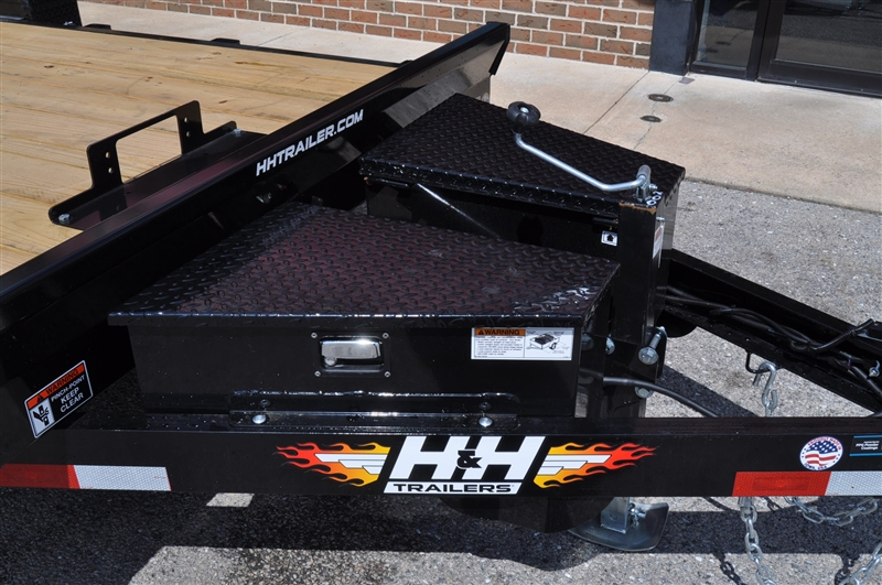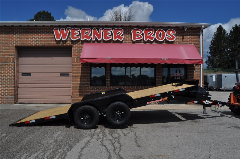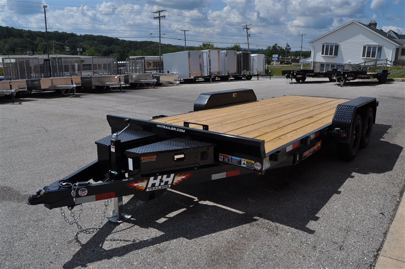 H & H ELECTRIC TILT SPEED LOADER CAR HAULER, 9900 LB GVWR, 6'' STEEL FRAME, 3'' STEEL CHANNEL CROSSMEMBERS, 2-5/16'' COUPLER, 7K DROP LEG TONGUE JACK, CUSTOM FORMED BULKHEAD, REVERSE TAPER DOVETAIL, 2 - 5200 LB SPRING AXLES, EZ LUBE HUBS, RADIAL TIRES, INDUSTRIAL GRADE POLYMER FINISH, 2'' PRESSURE TREATED PINE DECK, BANJO TIE DOWNS, STAKE POCKETS, TONGUE MOUNTED TOOL BOX AND TONGUE MOUNTED BATTERY AND PUMP BOX, SPARE MOUNT, SEALED WIRE HARNESS, LED LIGHTS, HYDRAULIC TILT CYLINDER / ELECTRIC POWER OPERATED, 12V DC BATTERY, ON BOARD 10 AMP CHARGER, WINCH PLATE, REMOVABLE FENDER. EXCELLENT FINANCING AVAILABLE. PLEASE CALL OUR LEADER HEIGHTS LOCATION AT 717-741-1567.