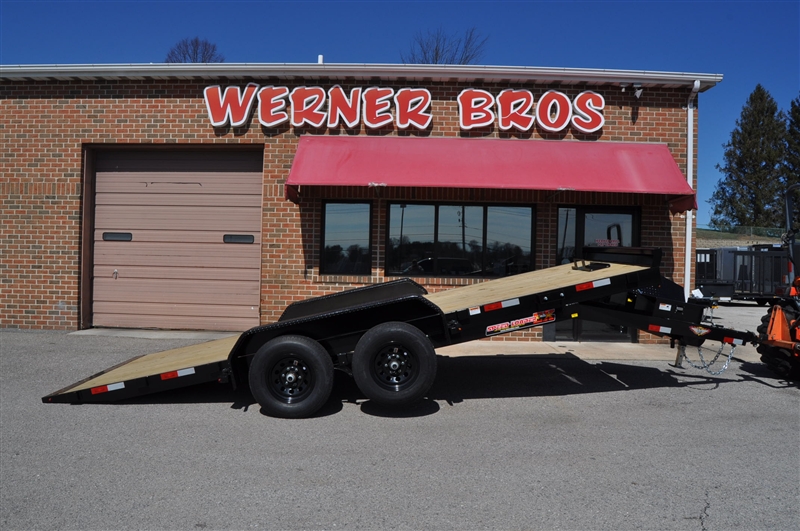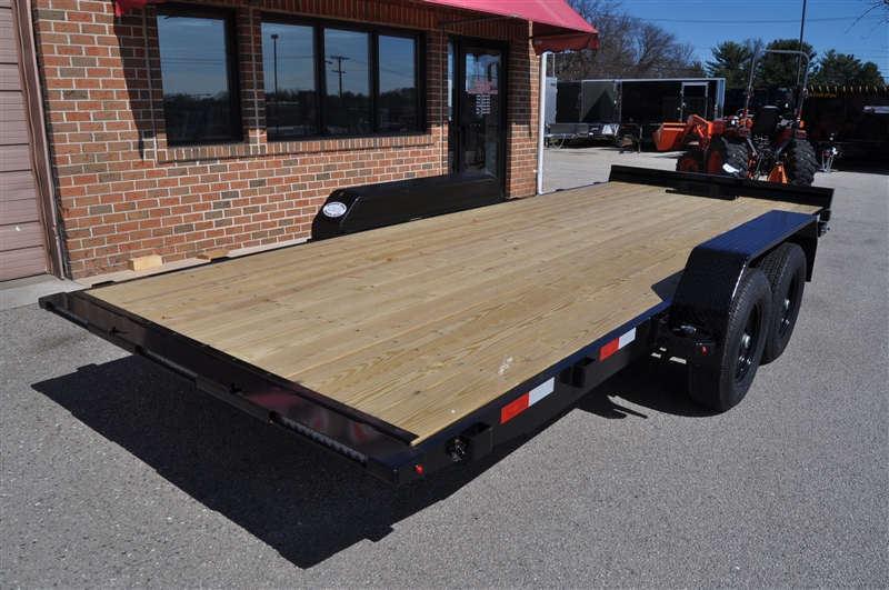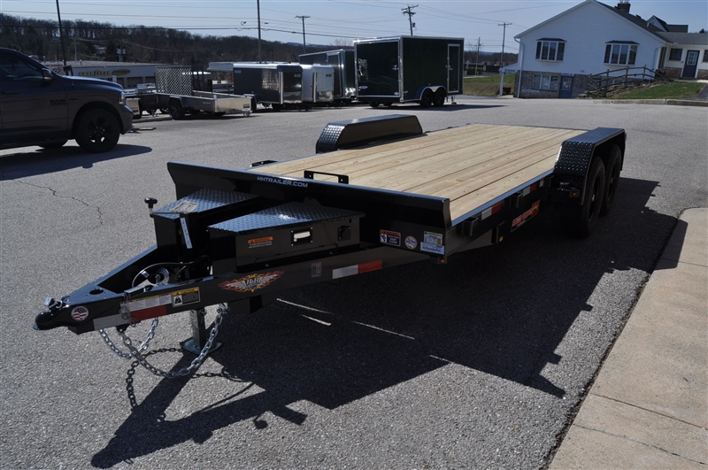 H & H ELECTRIC TILT SPEED LOADER CAR HAULER, 9900 LB GVWR, 6'' STEEL FRAME, 3'' STEEL CHANNEL CROSSMEMBERS, 2-5/16'' COUPLER, 7K DROP LEG TONGUE JACK, CUSTOM FORMED BULKHEAD, REVERSE TAPER DOVETAIL, 2 - 5200 LB SPRING AXLES, EZ LUBE HUBS, RADIAL TIRES, INDUSTRIAL GRADE POLYMER FINISH, 2'' PRESSURE TREATED PINE DECK, BANJO TIE DOWNS, STAKE POCKETS, TONGUE MOUNTED TOOL BOX AND TONGUE MOUNTED BATTERY AND PUMP BOX, SPARE MOUNT, SEALED WIRE HARNESS, LED LIGHTS, HYDRAULIC TILT CYLINDER / ELECTRIC POWER OPERATED, 12V DC BATTERY, ON BOARD 10 AMP CHARGER, WINCH PLATE, REMOVABLE FENDER. EXCELLENT FINANCING AVAILABLE. PLEASE CALL OUR LEADER HEIGHTS LOCATION AT 717-741-1567.