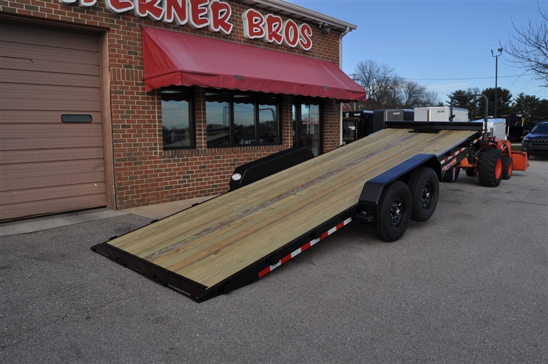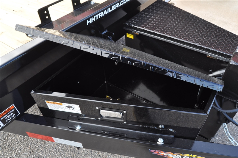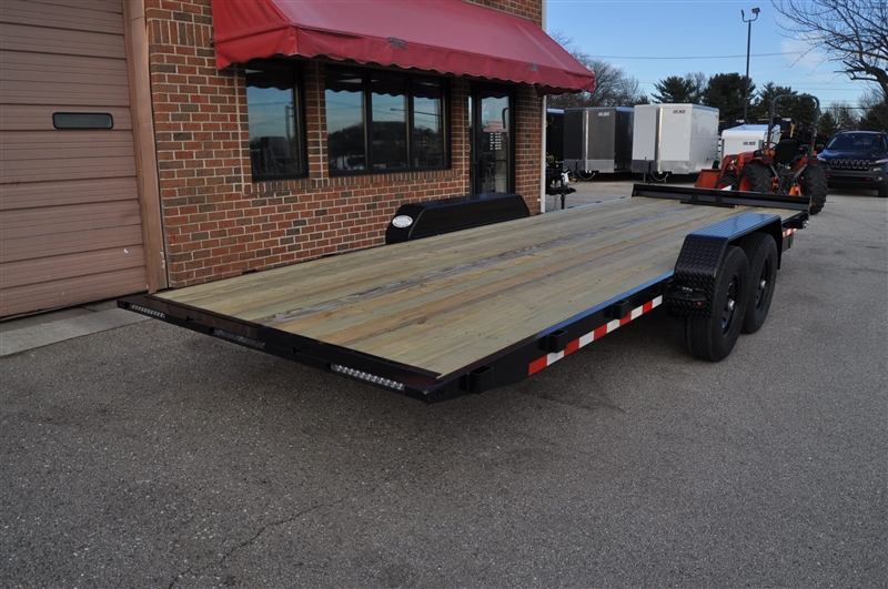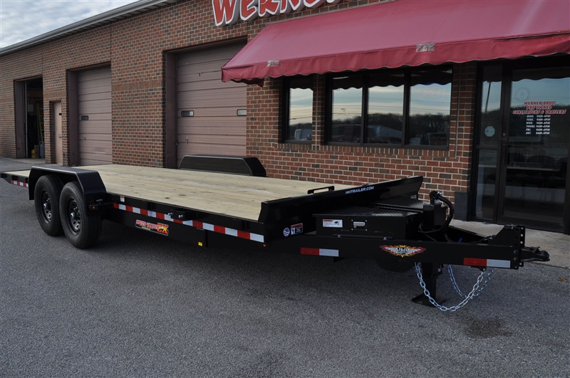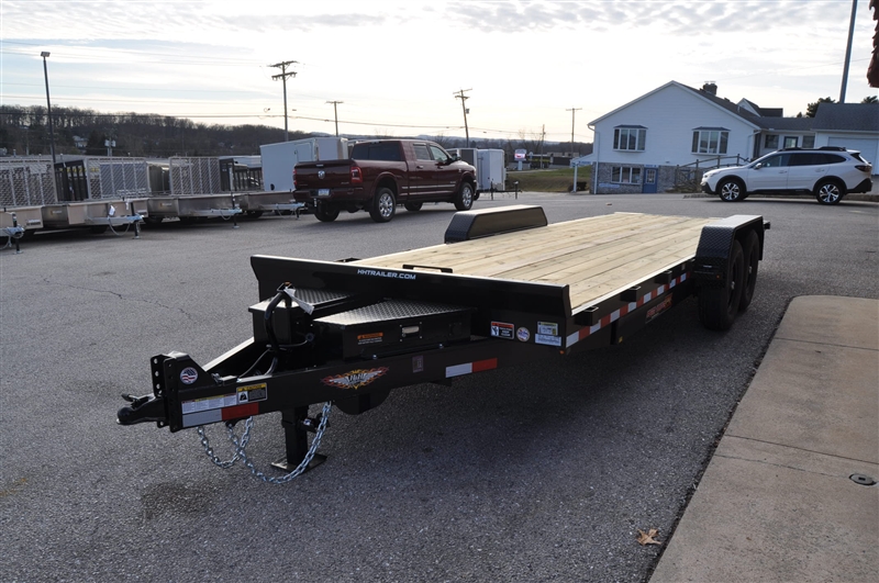 H & H SPEEDLOADER ELECTRIC TILT CAR/EQUIPMENT HAULER, 14000 LB GVWR, 6'' STEEL FRAME, 3'' CHANNEL CROSSMEMBERS, 6'' STEEL CHANNEL TONGUE, 2-5/16'' ADJUSTABLE COUPLER, 12K DROP LEG TONGUE JACK, HD TUBE BULKHEAD, REVERSE TAPER DOVETAIL, RADIAL TIRES, INDUATRIAL GRADE POLUMER FINISH, 2'' TREATED PINE DECKING, BANJO TIE DOWNS, STAKE POCKETS, TONGUE MOUNTED TOOL BOX, TONGUE MOUNTED BATTERY & PUMP BOX, SPARE CARRIER, SEALED WIRE HARNESS, LED LIGHTS, HYDRAULIC TILT CYLINDER ELECTRIC POWER OPERATED, 12 VOLT HYDRAULIC PUMP, ON BOARD 10 AMP BATTERY CHARGER, WINCH MOUNT PLATE, REMOVABLE FENDER. EXCELLENT FINANCING AVAILABLE. PLEASE CALL OUR LEADER HEIGHTS LOCATION AT 717-741-1567.