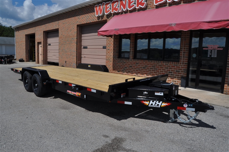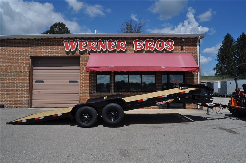 H & H SPEEDLOADER ELECTRIC TILT CAR/EQUIPMENT TRAILER, 14000 LB GVWR, 6'' STEEL FRAME, 3'' CHANNEL CROSSMEMBERS, 6'' STEEL CHANNEL TONGUE, 2-5/16'' ADJUSTABLE COUPLER, 12K DROP LEG TONGUE JACK, HD TUBE BULKHEAD, REVERSE TAPER DOVETAIL, RADIAL TIRES, INDUSTRIAL GRADE POLYMER FINISH, 2'' TREATED PINE DECKING, BANJO TIE DOWNS, STAKE POCKETS, TONGUE MOUNTED TOOL BOX, TONGUE MOUNTED BATTERY AND PUMP BOX, SPARE CARRIER, SEALED WIRE HARNESS, LED LIGHTS, HYDRAULIC TILT CYLINDERELECTRIC POWER OPERATED, 12 VOLT HYDRAULIC PUMP, ON BOARD BATTERY CHARGER, WINCH MOUNT PLATE, REMOVABLE FENDER. EXCELLENT FINANCING AVAILABLE. PLEASE CALL OUR LEADER HEIGHTS LOCATION AT 717-741-1567.