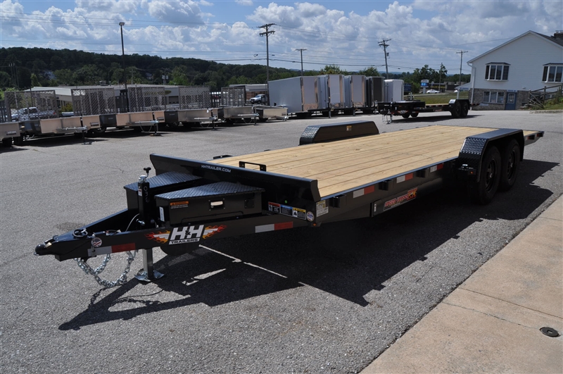 H & H SPEEDLOADER ELECTRIC TILT CAR/EQUIPMENT TRAILER, 14000 LB GVWR, 6'' STEEL FRAME, 3'' CHANNEL CROSSMEMBERS, 6'' STEEL CHANNEL TONGUE, 2-5/16'' ADJUSTABLE COUPLER, 12K DROP LEG TONGUE JACK, HD TUBE BULKHEAD, REVERSE TAPER DOVETAIL, RADIAL TIRES, INDUSTRIAL GRADE POLYMER FINISH, 2'' TREATED PINE DECKING, BANJO TIE DOWNS, STAKE POCKETS, TONGUE MOUNTED TOOL BOX, TONGUE MOUNTED BATTERY AND PUMP BOX, SPARE CARRIER, SEALED WIRE HARNESS, LED LIGHTS, HYDRAULIC TILT CYLINDERELECTRIC POWER OPERATED, 12 VOLT HYDRAULIC PUMP, ON BOARD BATTERY CHARGER, WINCH MOUNT PLATE, REMOVABLE FENDER. EXCELLENT FINANCING AVAILABLE. PLEASE CALL OUR LEADER HEIGHTS LOCATION AT 717-741-1567.