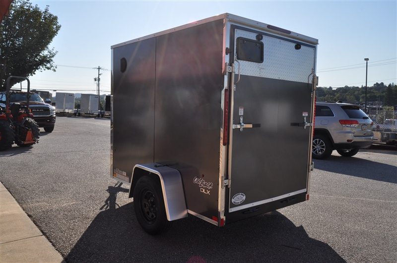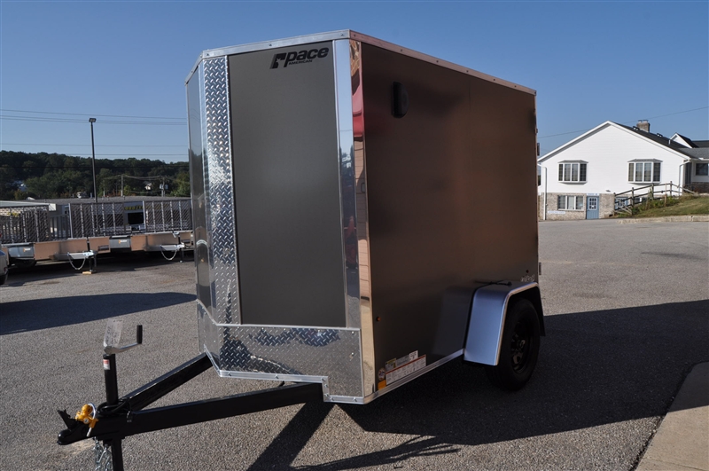 PACE 5 X 8 OUTBACK DELUXE ENCLOSED V NOSE TRAILER, 2990 LB GVWR, 6' INTERIOR HEIGHT, BAR LOCK AND PADDLE LATCH ON SIDE DOOR, COMPOSITE CHARCOAL EXTERIOR, REAR RAMP DOOR, DOME LIGHT, 15'' RADIAL TIRES AND STEEL WHEELS, HIGH PERFORMANCE FLOOR AND WALLS. EXCELLENT FINANCING AVAILABLE. PLEASE CALL OUR LEADER HEIGHTS LOCATION AT 717-741-1567.