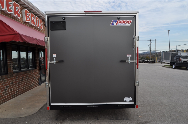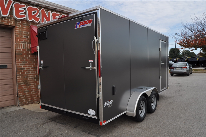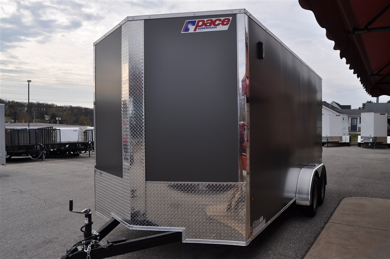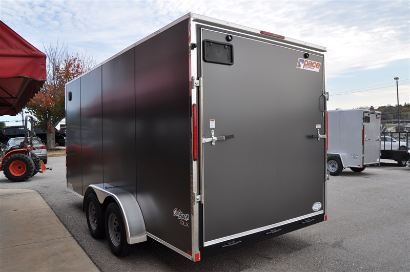 PACE 7 X 16 OUTBACK DLX ENCLOSED V NOSE TRAILER, 7000 LB GVWR, ATP STONE GUARD AND ALUMINUM CORNERS, HIGH PERFORMANCE WALLS AND FLOOR, REAR RAMP DOOR, SIDE DOOR WITH BAR LOCK AND PADDLE LATCH, RAMP EXTENSION, COMPOSIT CHARCOAL EXTERIOR, BAR LOCK AND PADDLE LATCH ON SIDE DOOR, DOME LIGHT, WALL VENTS. 15'' RADIAL TIRES AND STEEL WHEELS. EXCELLENT FINANCING AVAILABLE. PLEASE CALL OUR LEADER HEIGHTS LOCATION AT 717-741-1567.
